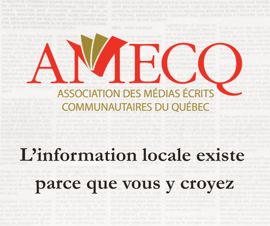 Vous appréciez cette publication du Journal des voisins? Nous avons besoin de vous pour continuer à produire de l’information indépendante de qualité et d’intérêt public. Toute adhésion faite au Journal des voisins donne droit à un reçu fiscal.