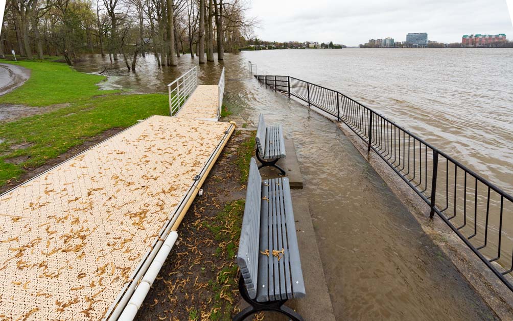 Depuis des semaines, 25 employés de l’arrondissement surveillent la crue tous les jours. Ils ont posé 90 m de muret Muscle Wall, aménagé 238 m de digue avec des sacs de jute Citadelle, transporté 320 tonnes de sable en vrac et ils ont étendu 238 m de membrane en polyéthylène.