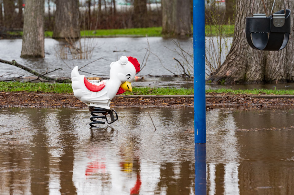 Lui aussi surveille la montée des eaux et il a développé ses propres repères. Il voit si le court de tennis et la piscine du club de canotage à côté de chez lui sont sous l’eau. Un peu plus loin, il scrute les piliers sous le pont Lachapelle. Il se souvient où l’eau était arrivée en 2017 et en 2019.