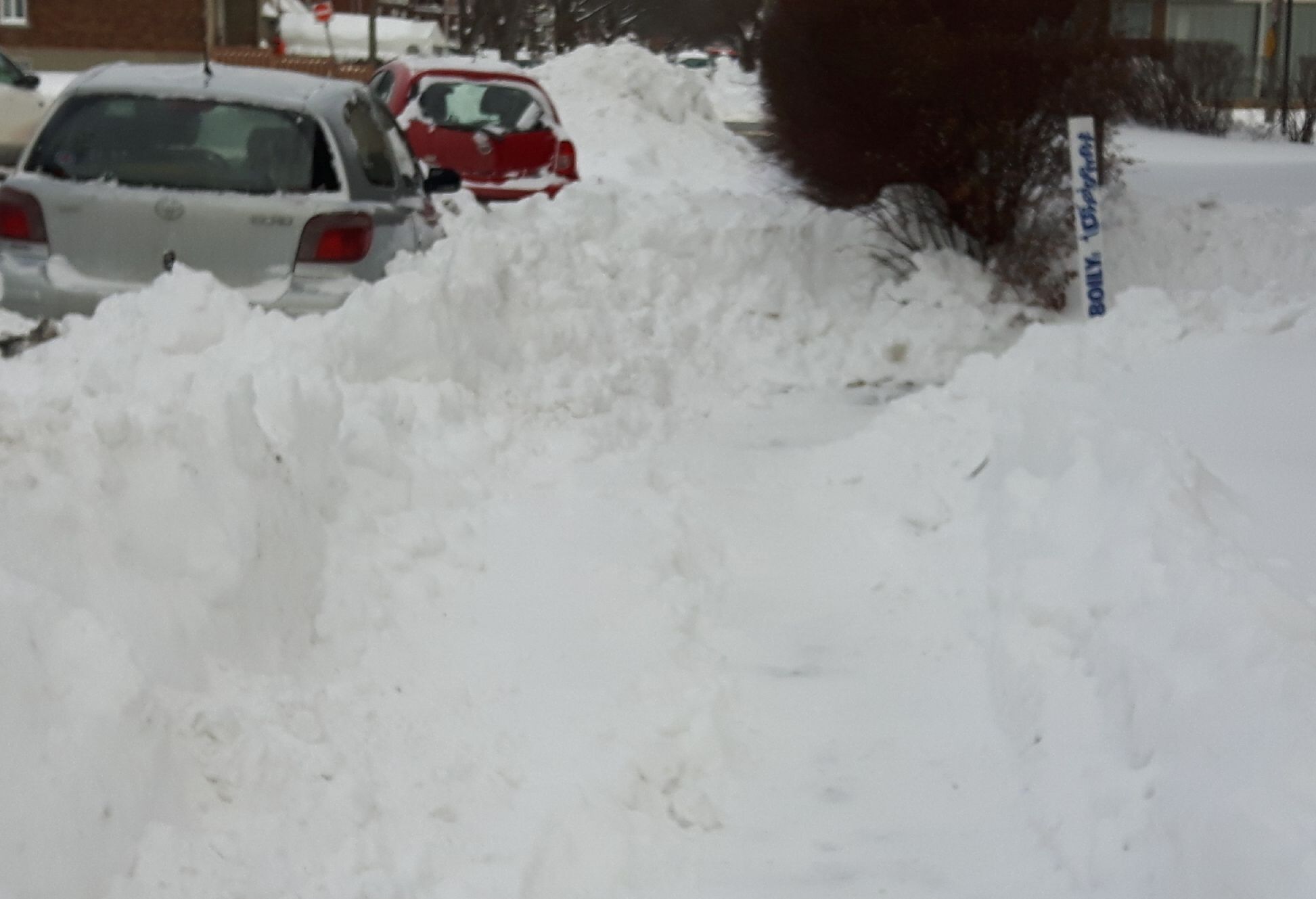 Parfois, les déneigeuses peuvent empiéter un peu sur le terrain des citoyens pour arriver à déneiger ces bouts de trottoirs, malgré tout. Par contre, cette pratique peut engendrer des bris et des plaintes. Aussi, à certains endroits, il y a des lampadaires, des poteaux d’Hydro ou des aménagements résidentiels qui empêchent la déneigeuse de dévier du trottoir.