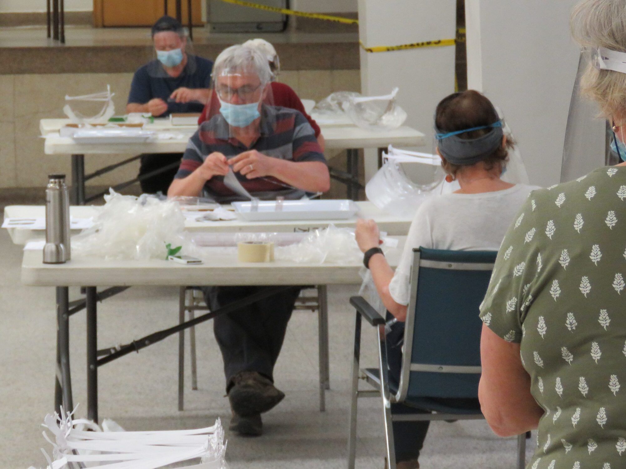 Le groupe est à l’Å“uvre environ trois demi-journées par semaine. Une fois leur vitesse de croisière atteinte, ils peuvent produire 600 visières par quart de travail.