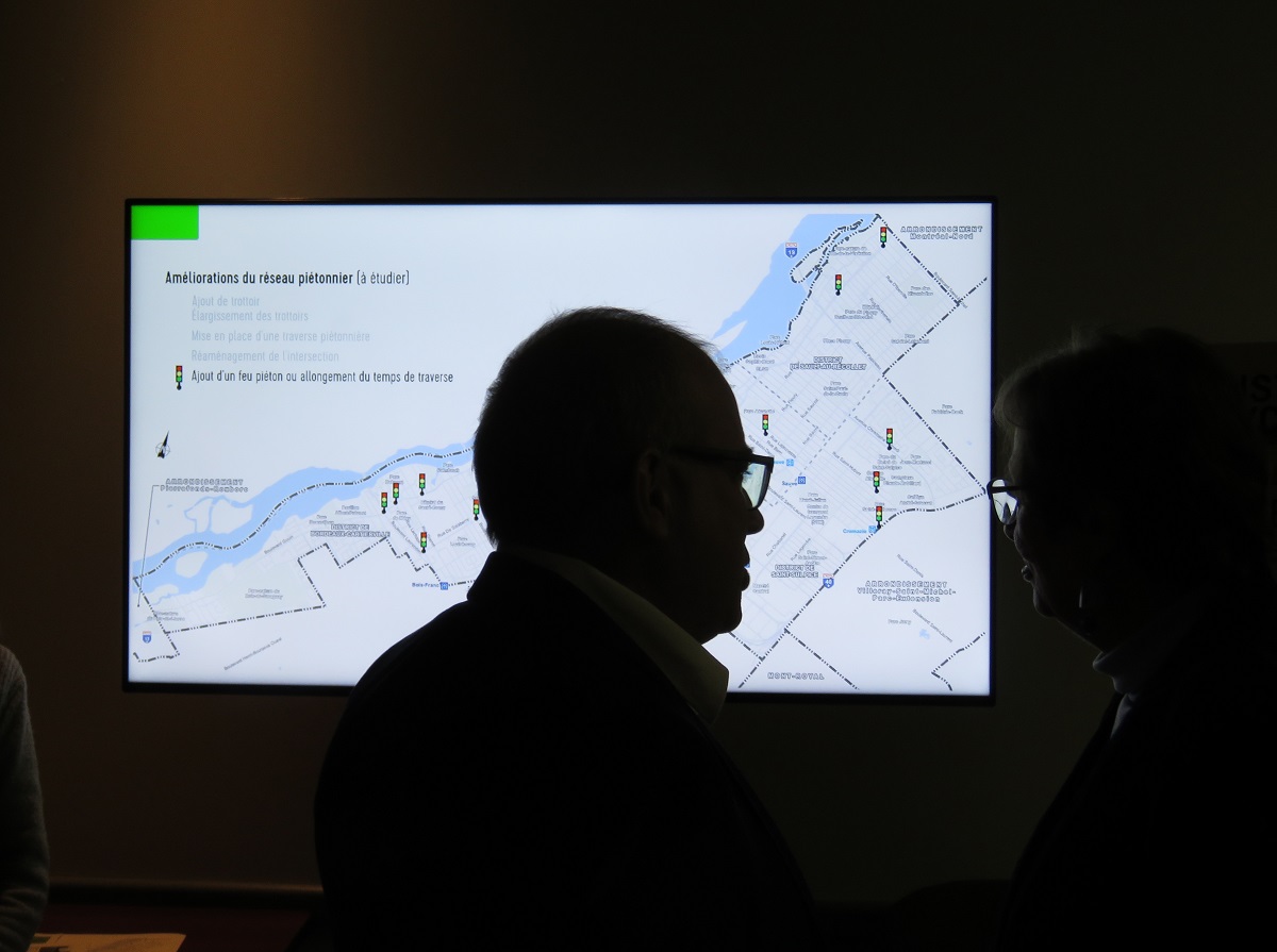 Une soixantaine de citoyens se sont déplacés le mercredi soir 22 janvier dernier pour le dévoilement du plan local de déplacements (PLD) d’Ahuntsic-Cartierville au bureau d’arrondissement situé au 555, rue Chabanel. Sur place, la majorité des membres de l’équipe engagé au sein du projet et plusieurs élus de l’arrondissement. Les discussions étaient dynamiques!