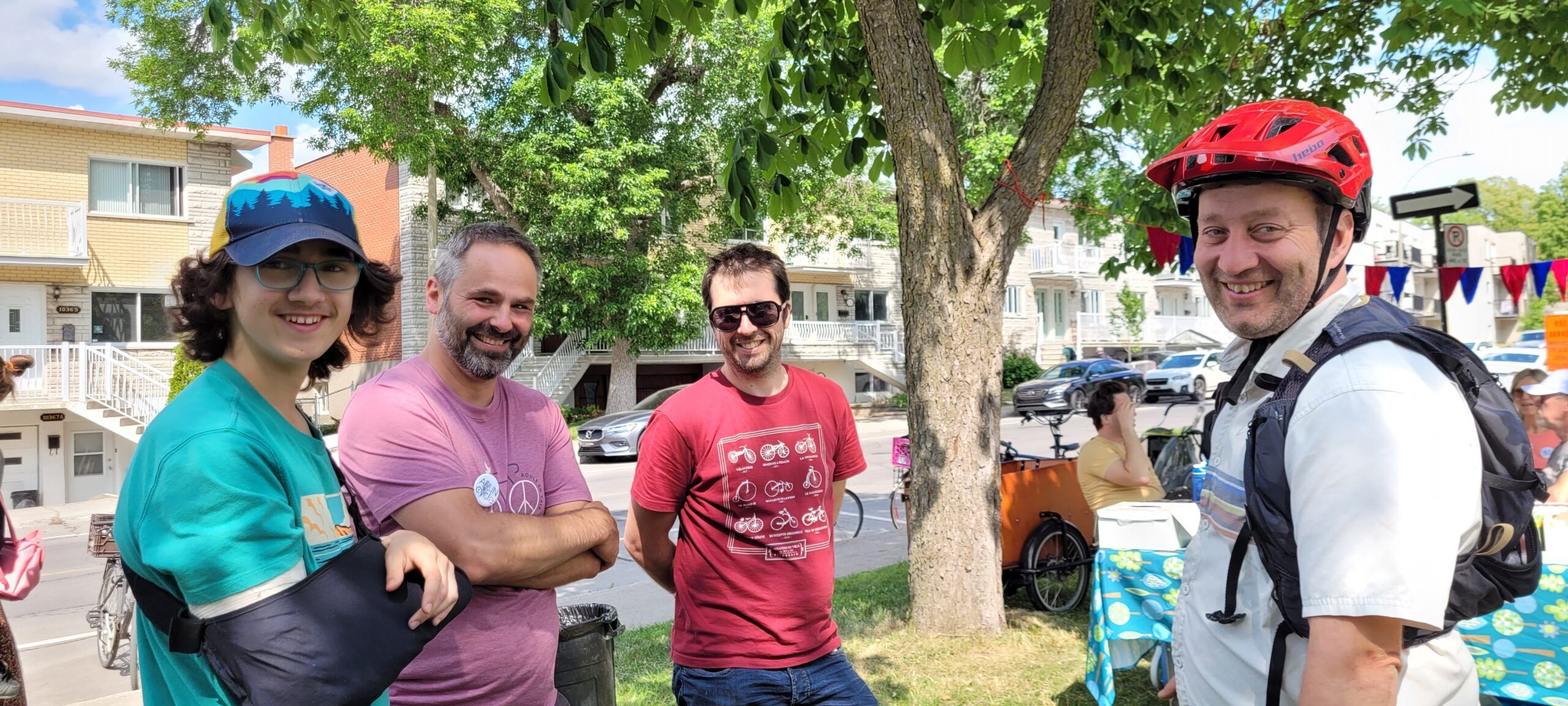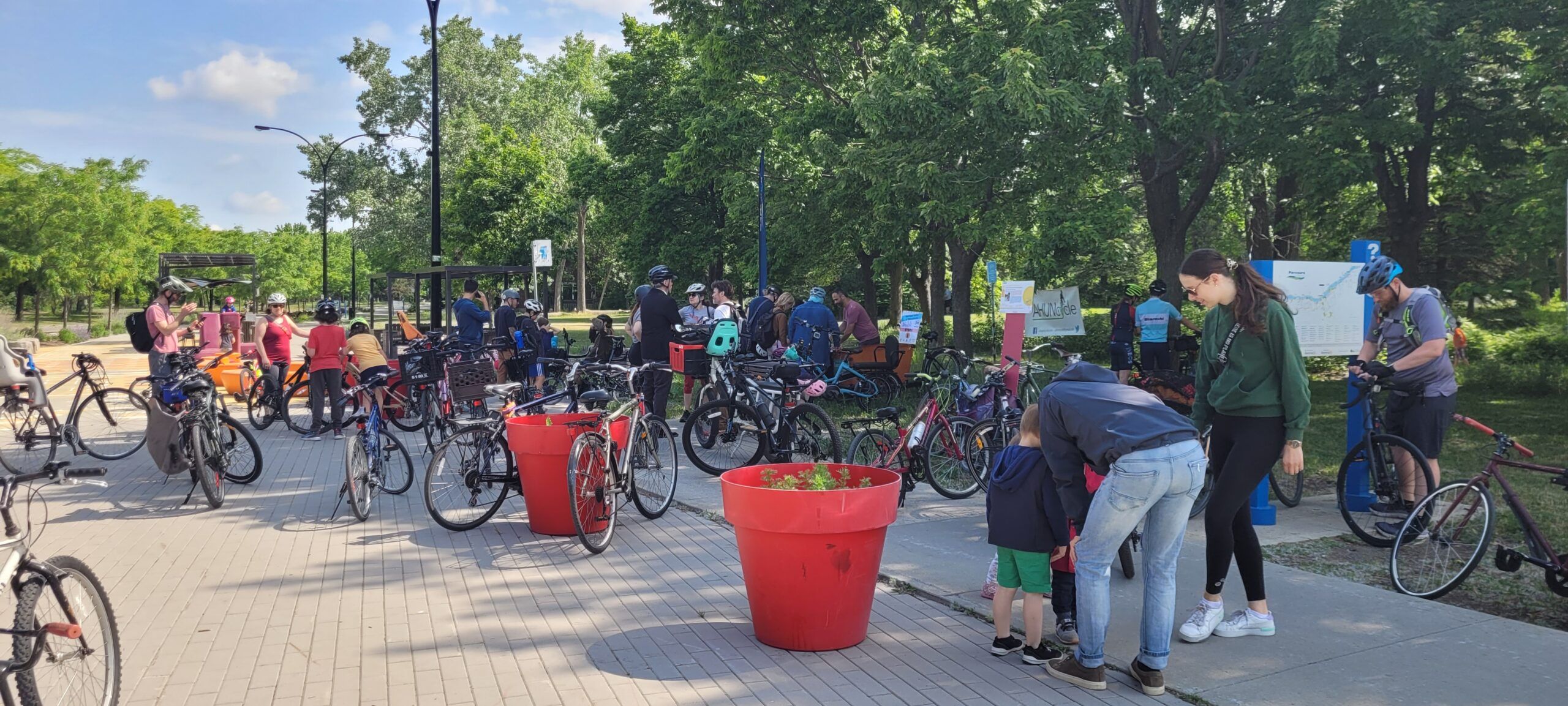 Les plus sportifs ont choisi de se rendre à la boutique Bicyclettes Montréal-Nord (et les responsables de Rêver Gouin), pour ajouter quelques kilomètres à l’expérience. Et finalement, l’accueil festif des participants se faisait à la Place Taché (tout près de la rue Fleury), où les attendaient l’un des organisateurs du rallye, Didier Haillot, ainsi que des voisins de la rue avec décorations, chaises, collations et rafraîchissements (offerts par l’épicerie Métro), des jeux pour enfants, des coloriages et de la musique.