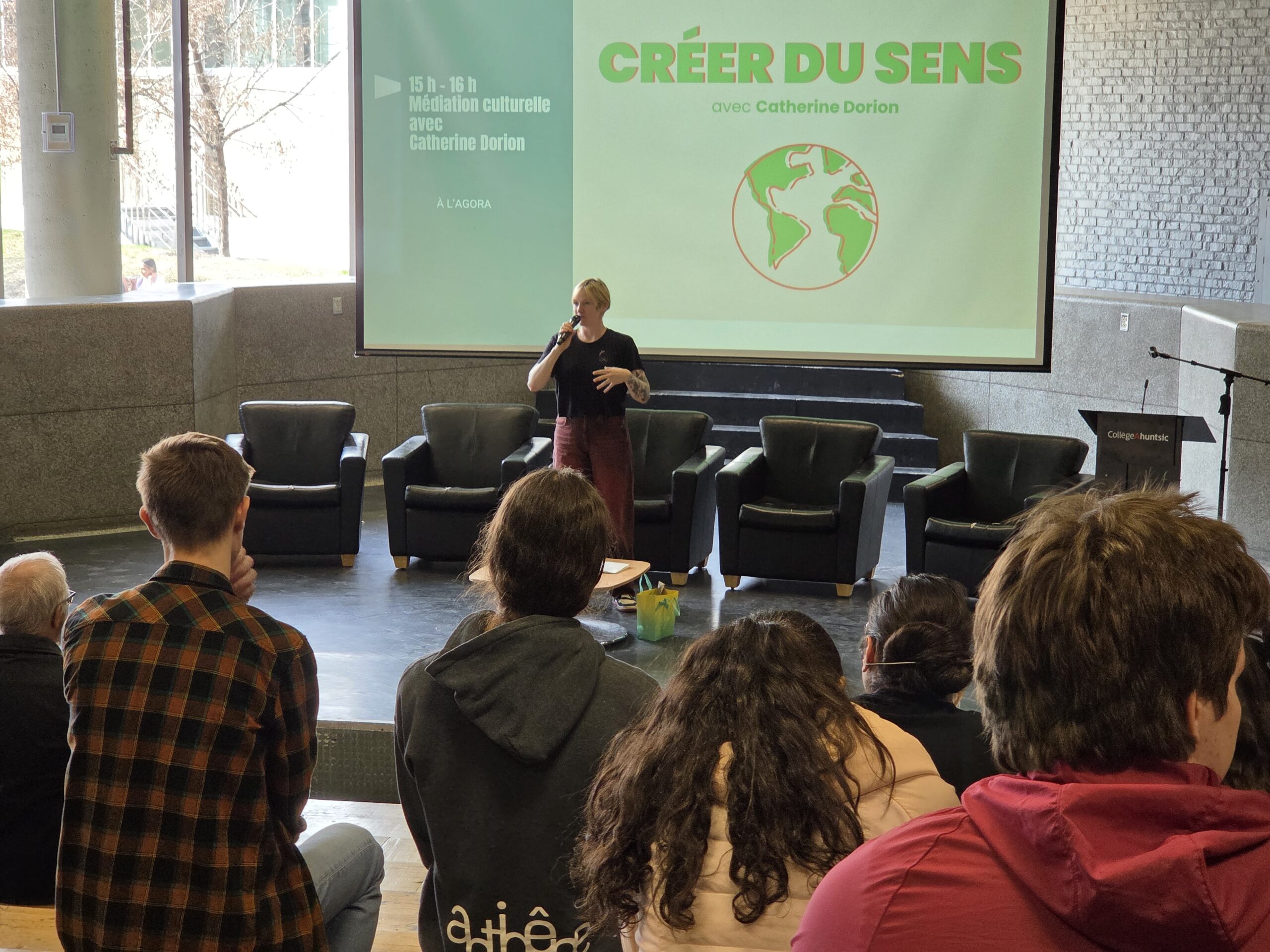 Catherine Dorion a animé une conférence à l’occasion du jour de la Terre autour de la thématique « Créer du sens : médiation culturelle », une autopsie du vivre-ensemble à l’agora du Collège Ahuntsic.