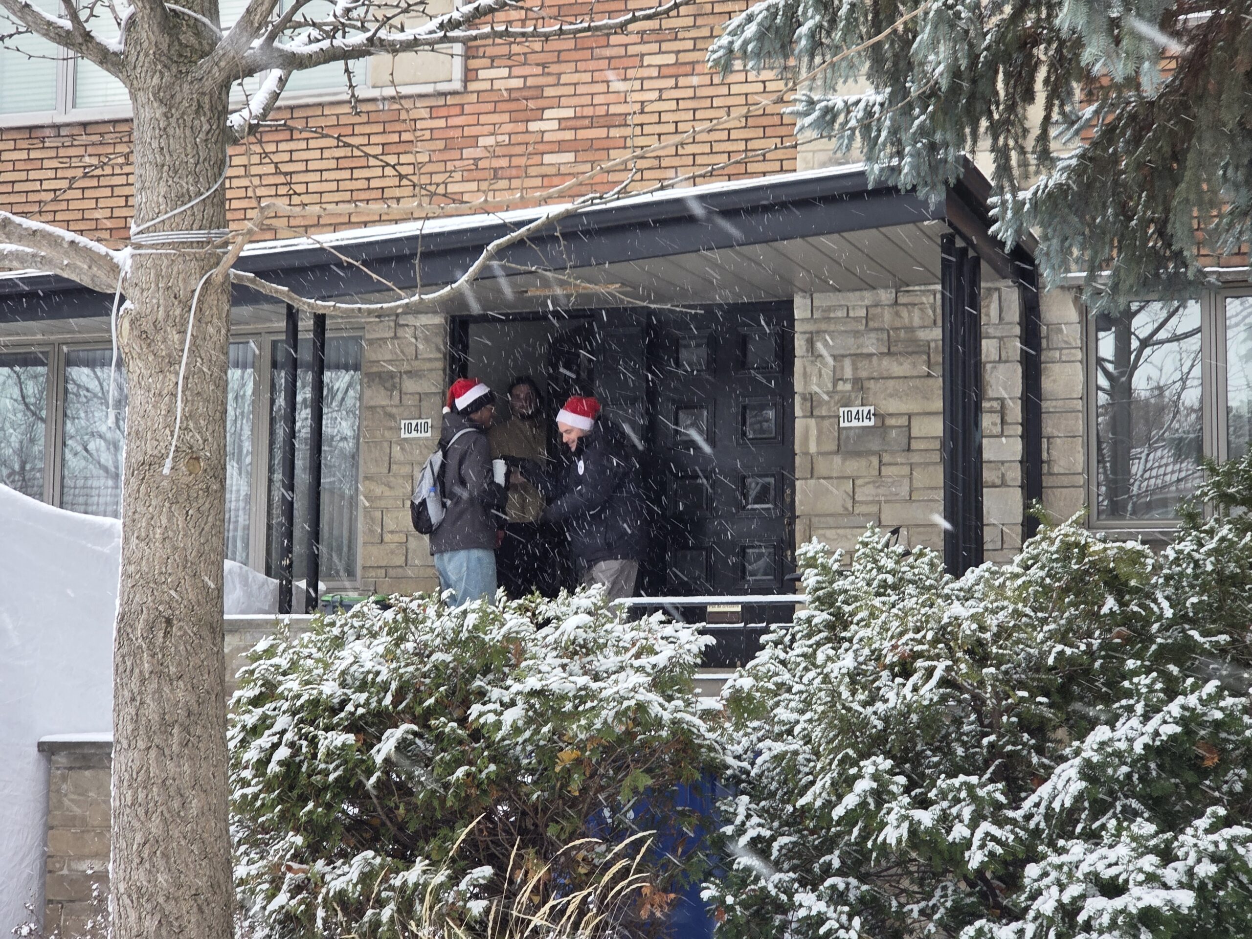 J’embarque dans le véhicule de la famille Cardin qui a accepté que je suive son trajet. Une musique du temps des Fêtes nous mène à leur route, avenue d’Auteuil. À cette rue, nous attendaient les autres membres de l’équipe préalablement arrivés.