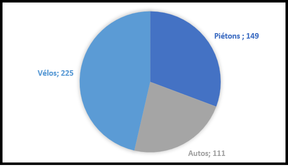 Résultat du comptage d’une heure sur la rue Prieur coin Esplanade, le 17 septembre 2025 (Infographie : Philippe Rachiele, JDV)