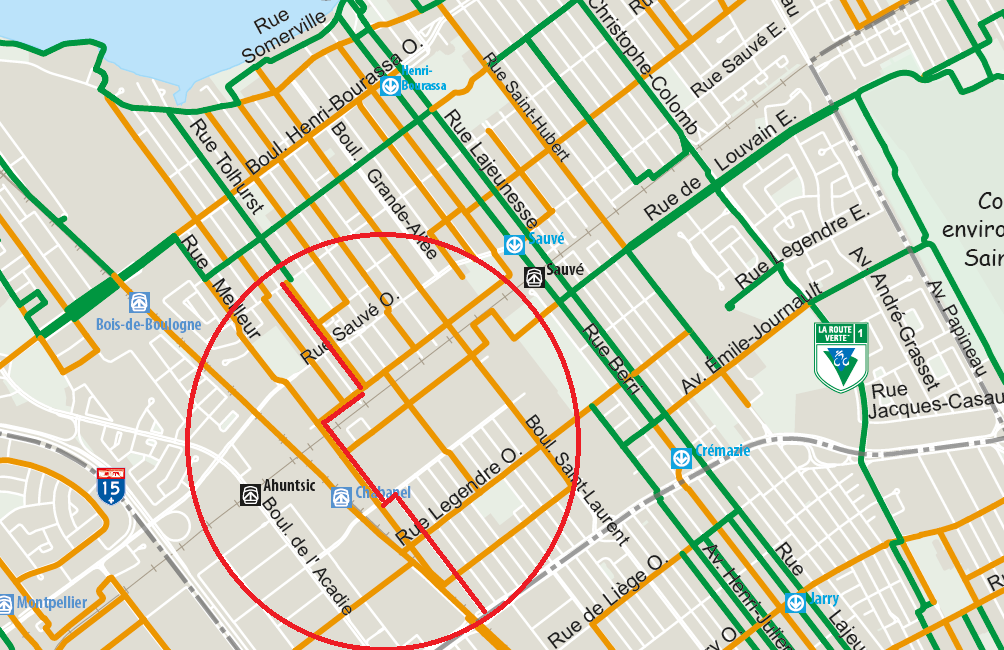 Les autres options comme piste nord/sud étaient non praticables.  À l’est, le boulevard Saint-Laurent a une voie réservée aux autobus, et à l’ouest, le boulevard Acadie serait trop à l’ouest pour de nombreux citoyens d’Ahuntsic-Ouest.