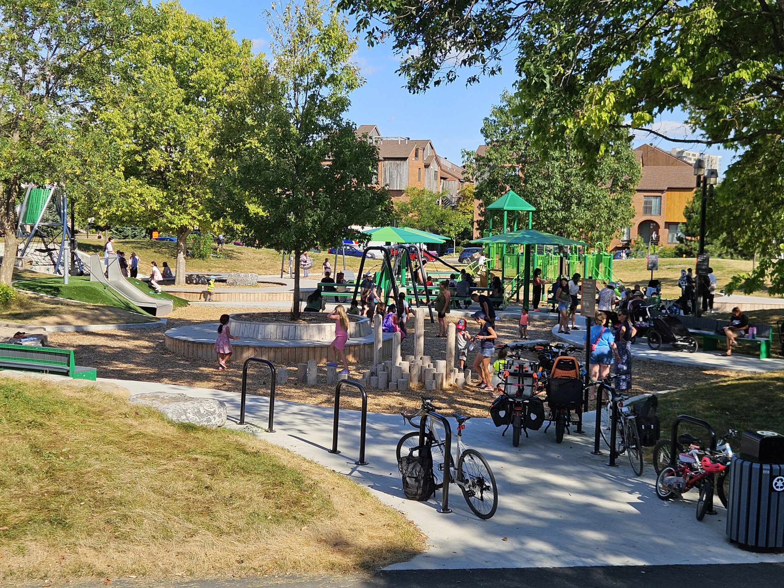 Des aires de jeux pour les tous petits et les adolescents, un jet d’eau, un parc à chiens, des espaces de repos, tout est fait pour que les résidents se sentent bien dans le parc. Les enfants qui ont envahit les lieux ne dissimulent pas leur joie.