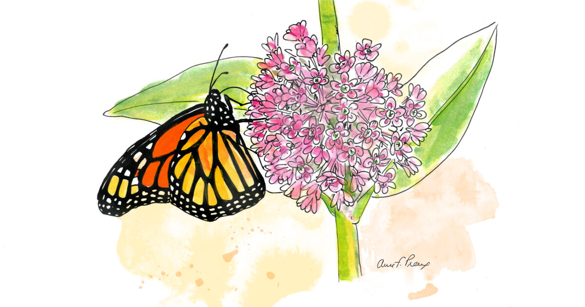 Papillion monarque sur une asclépiade commune. Illustration : Courtoisie Anne F. Préaux