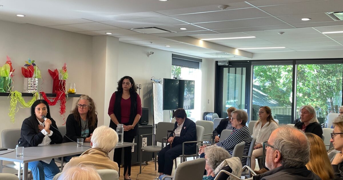 Organisés par la Fondation Berthiaume-du-Tremblay, les aînés du secteur Sault-au-Récollet ont pu rencontrer tout d’abord les candidates d’Ensemble Montréal, Soraya Martinez, Maude Théroux-Séguin et Joanne Lacombe, et la semaine suivante les candidates de Projet Montréal, Emilie Thuillier et Carla Beauvais.