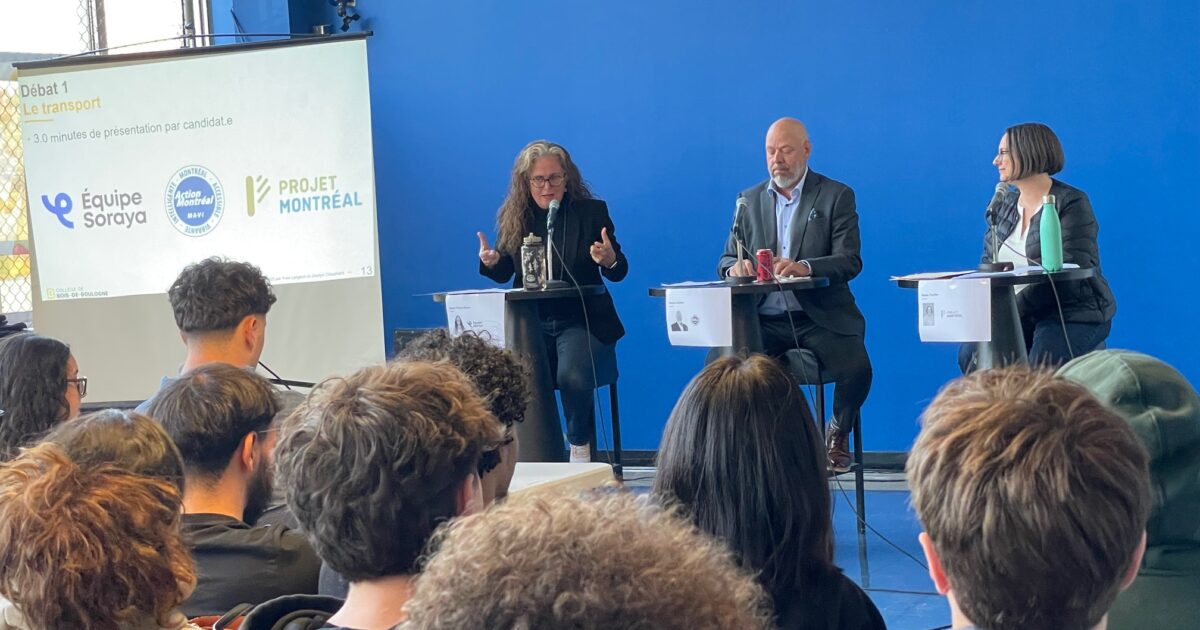 Deux professeurs du collège Bois-de-Boulogne, Jocelyn Chouinard et Yves Langevin, ont organisé un débat à saveur économique entre les candidats à la mairie d’arrondissement. Emilie Thuillier de Projet Montréal, Maude Théroux-Séguin d’Ensemble Montréal et Stefan Leblanc d’Action Montréal se sont prêtés au jeu devant une salle pleine de jeunes motivés à entendre leurs propositions.
