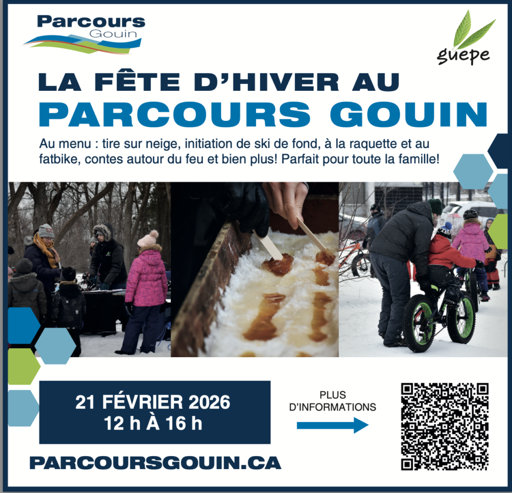 GUEPE organise la fête d’hiver au Parcours Gouin le samedi 21 février de 12h à 16h.