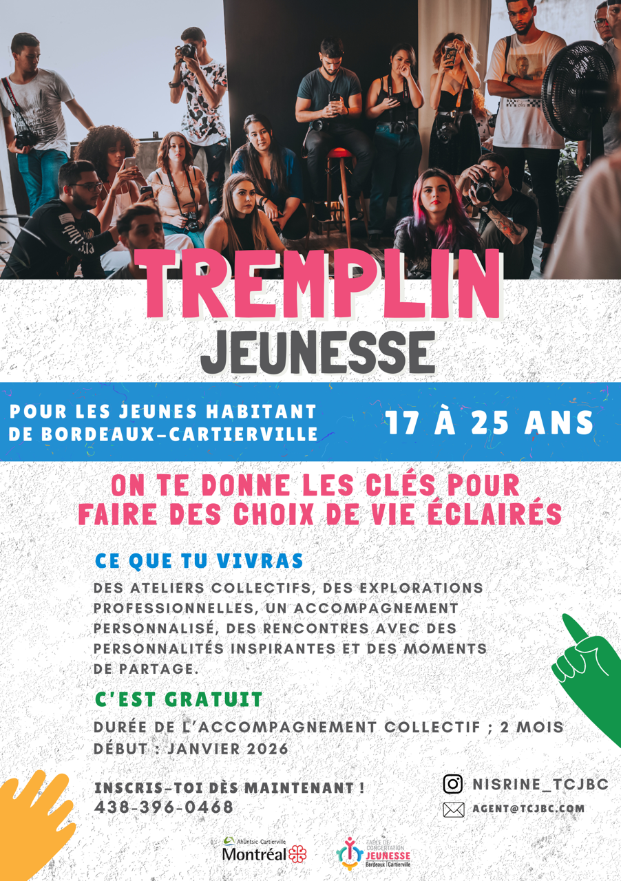 La Table de concertation jeunesse de Bordeaux-Cartierville vient de lancer sa période de recrutement pour le projet Tremplin Jeunesse : Inclusion et Autonomie.