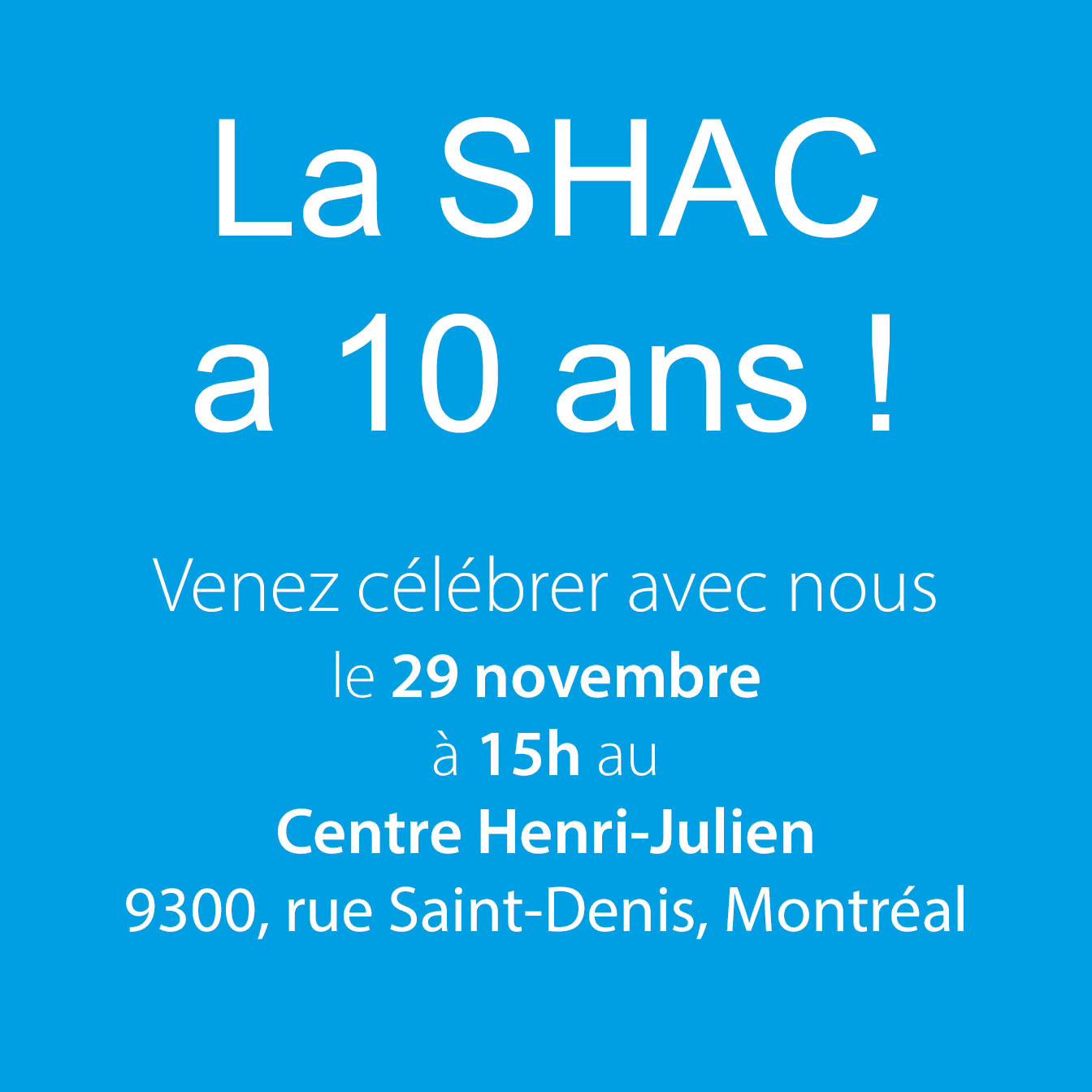 La Société d’histoire d’Ahuntsic-Cartierville (SHAC) invite le public à leur évènement organisé dans le cadre de leur dixième anniversaire.