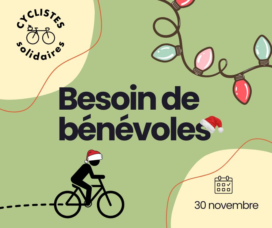 Les Cyclistes solidaires sont à la recherche de bénévoles pour les accompagner à vélo lors de la collecte de denrées pour la guignolée de la Société de Saint-Vincent de Paul.