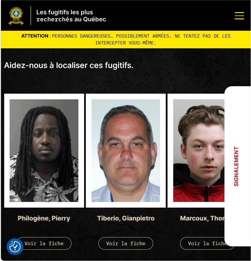 Vous pouvez aussi faire un signalement en ligne sur fugitifsquebec.com