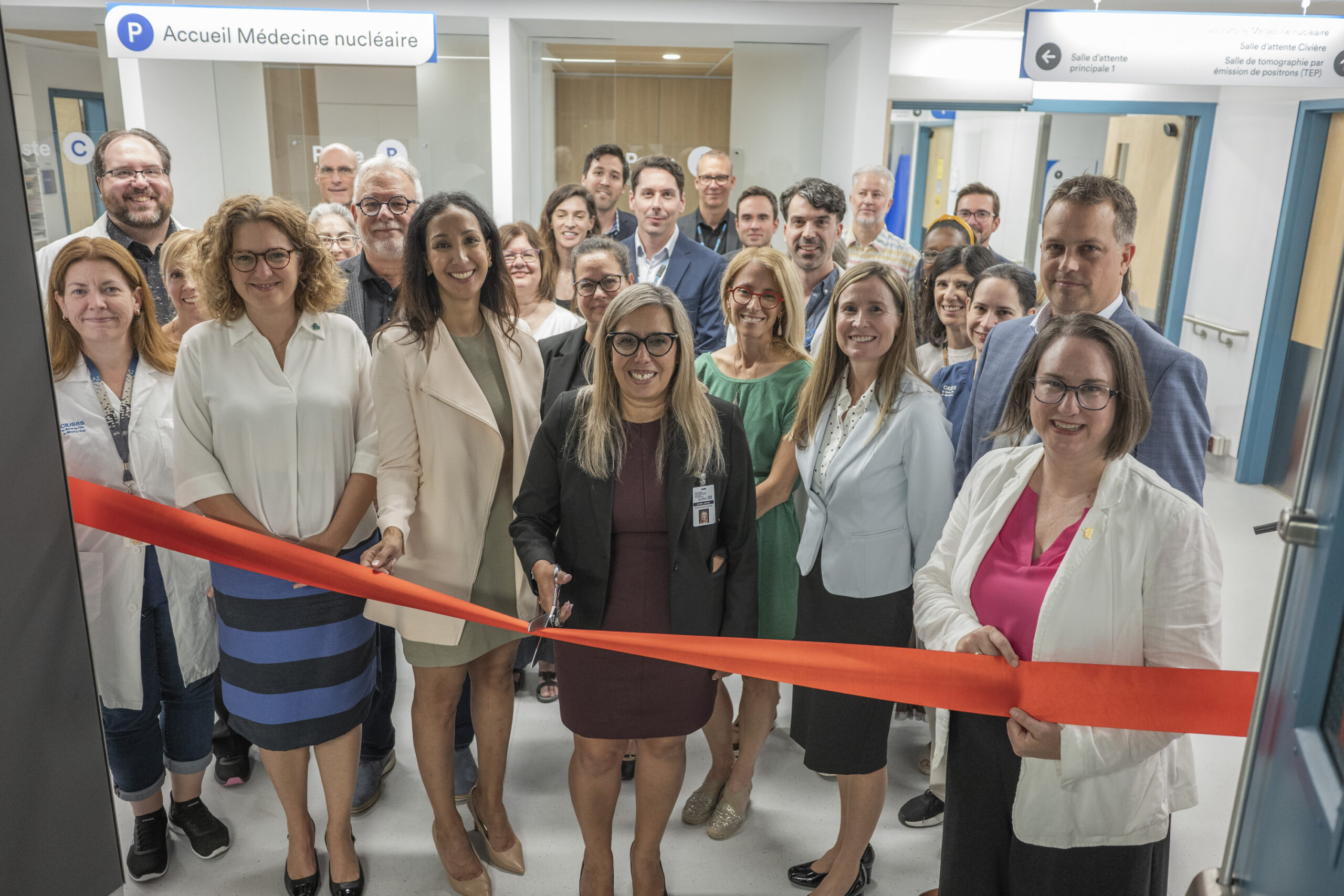 Des personnalités politiques et du corps médical étaient présentes à cette cérémonie d’inauguration du pavillon de médecine nucléaire de l’Hôpital du Sacré-Cœur. Photo CIUSSS.