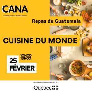 Pour la dernière semaine de février, le CANA (Carrefour d’aide aux nouveaux arrivants) organise un atelier de cuisine guatémaltèque.