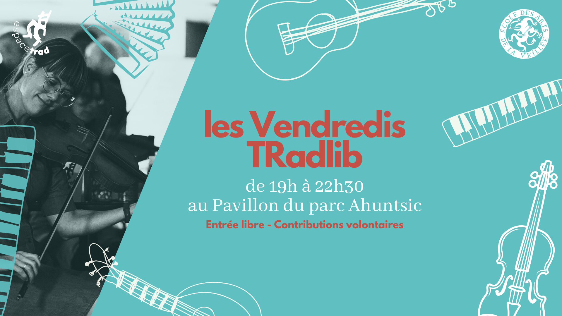 La deuxième soirée des Vendredis TRadlib se déroulera le 10 octobre au pavillon du parc Ahuntsic. Cet évènement permettra aux musiciens débutants ou avancés de se regrouper pour une pratique avec des artistes d’expérience.