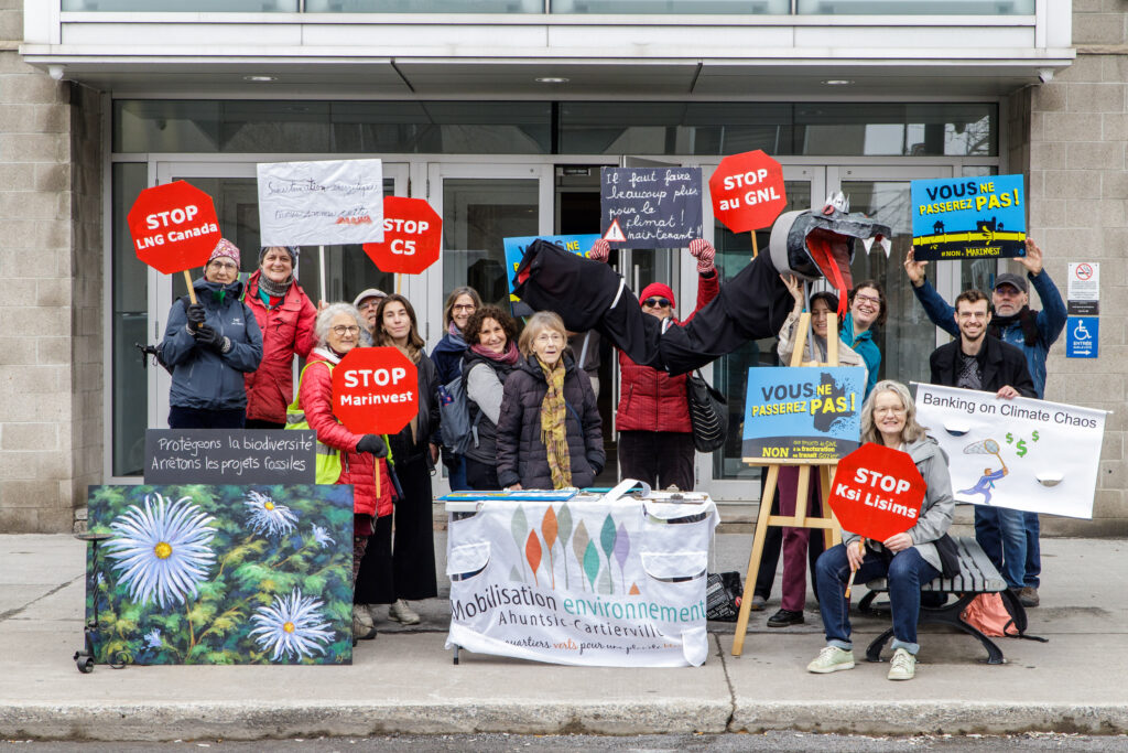Deux comités citoyens de l’arrondissement ont manifesté contre le projet d’extraction et d’exploitation du gaz naturel liquéfié (GNL) devant le bureau de la ministre de l’Industrie du Canada, Mélanie Joly, le 15 avril.