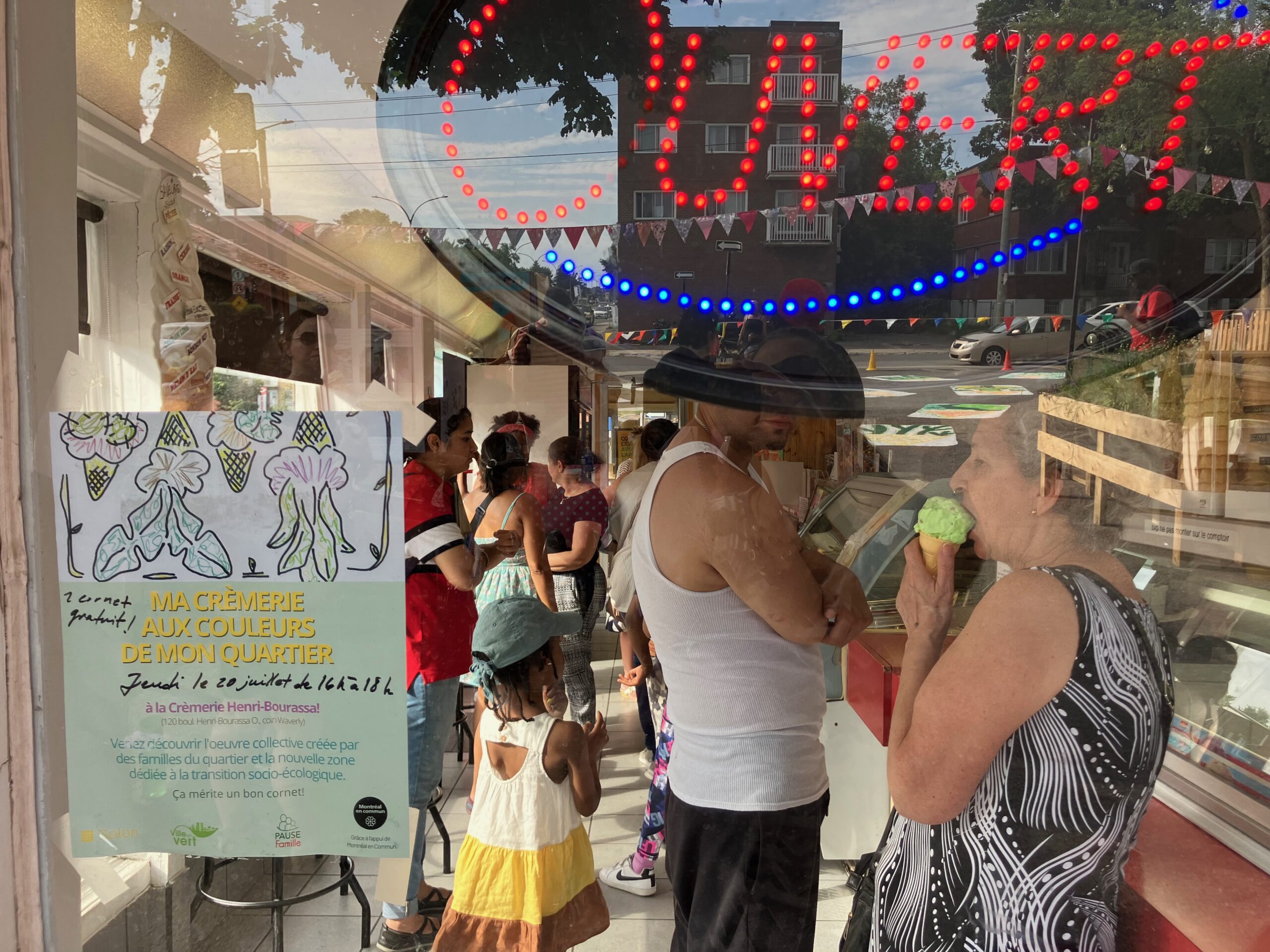 Léon, gérant de la crèmerie, se réjouissait du projet qui complète bien la mission de son commerce, soit de mettre un sourire aux lèvres des gens, tout comme ses produits glacés «aux bons ingrédients», précise-t-il. «Ça crée de la bonne humeur et ça donne un impact positif à notre quartier!»