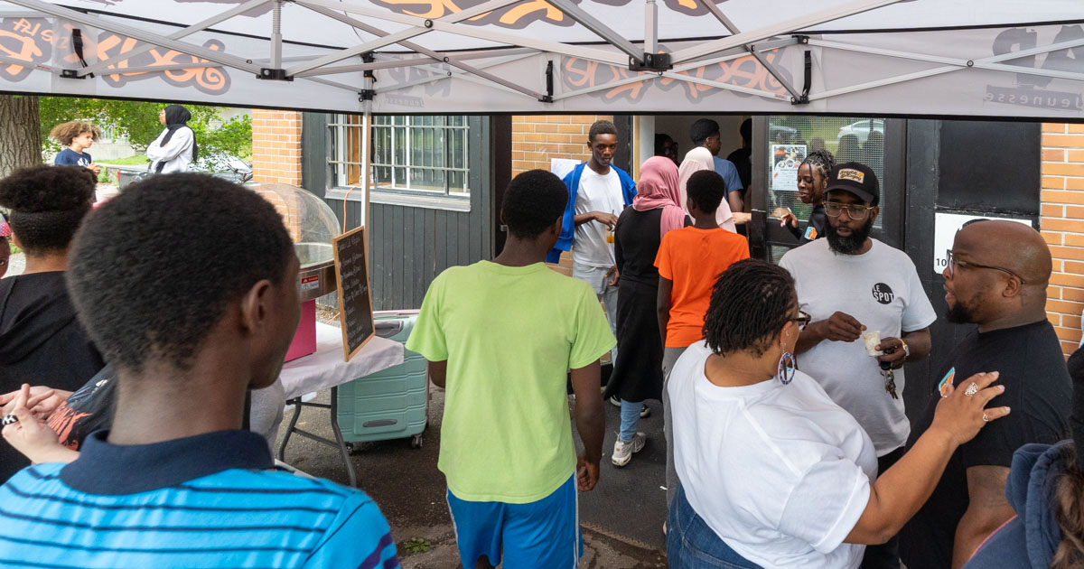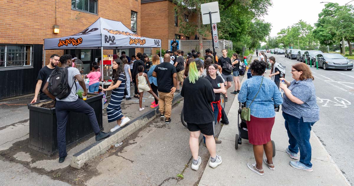 Une soixantaine de personnes présentes lors de l’ouverture du Spot, aux HLM Saint-Sulpice, sur Louvain Est.(Photo: François Robert-Durand, JDV)