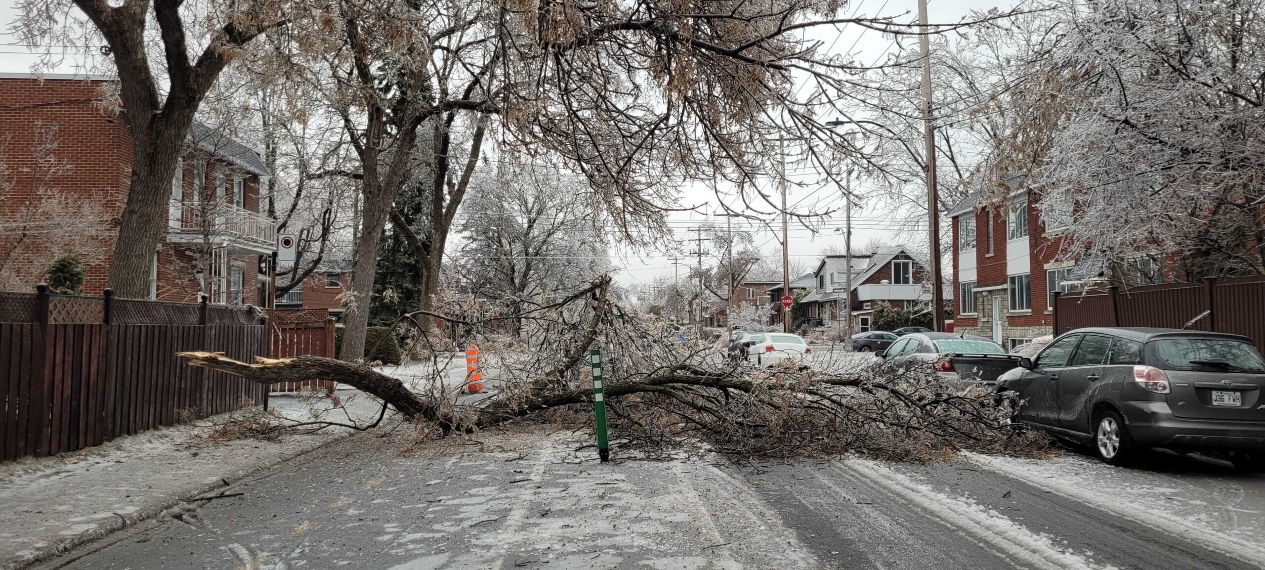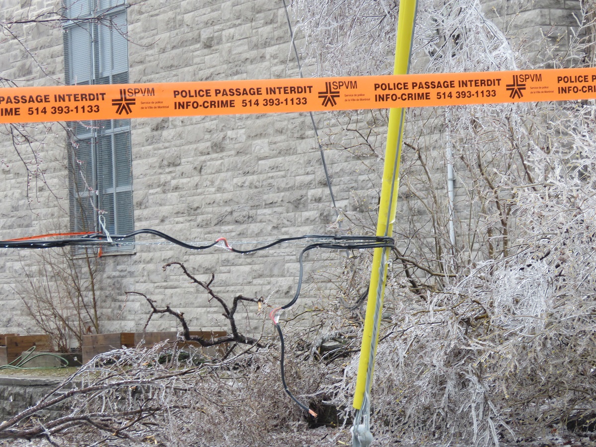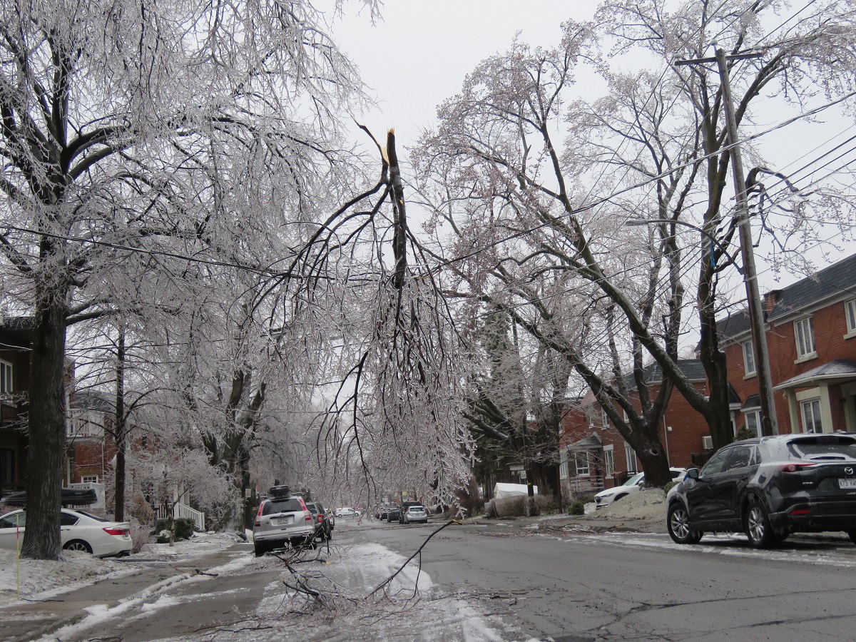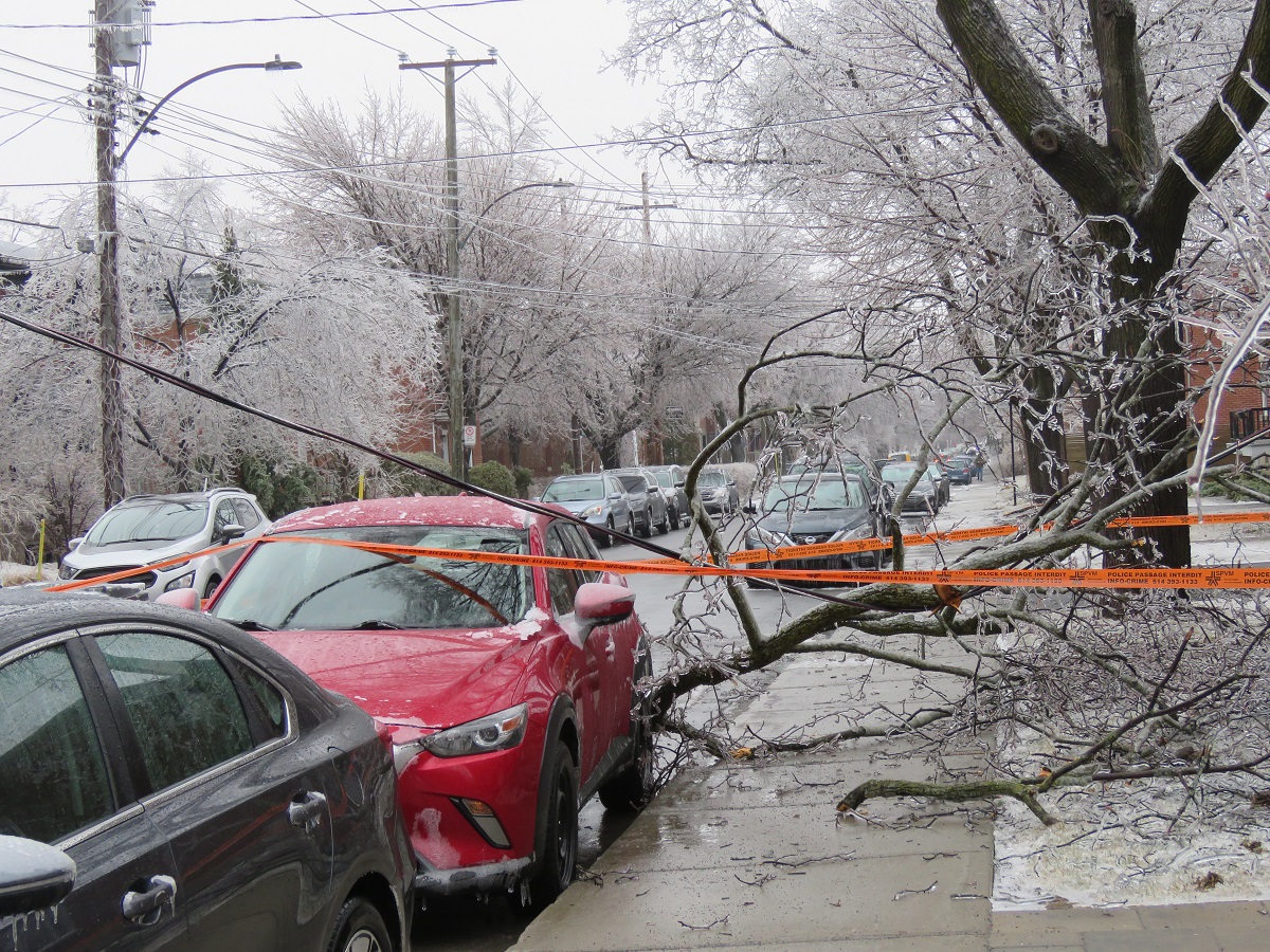 Le verglas a fortement endommagé les arbres, nombreux et vieillissants à Ahuntsic-Cartierville, causant des bris et des chutes de branches, avec les conséquences que l’on connaît: fils électriques et transformateurs cassés causant des pannes de courant, rues et terrains jonchés de débris, feux de circulation éteints, personnes blessées, maisons et voitures endommagées, écoles, bibliothèques et commerces fermés…